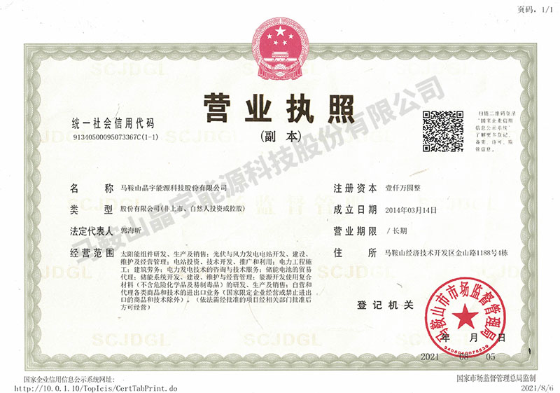 馬鞍山晶宇能源科技股份有限公司 版權(quán)所有 免責(zé)聲明 皖I(lǐng)CP備17013678號(hào) 營(yíng)業(yè)執(zhí)照
